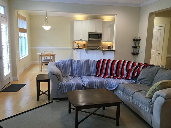 APPLICATION PENDING - BY APPOINTMENT ONLY - HOLLY GLEN TOWNHOMES - 3BD/2.5BA and flex room - No students/cosigners - Pets Ok - Rent includes: front lawn care and back lawn care(trimming bushes and weeding beds is tenant responsibility) - mowing only and pest control. - Fenced yard - Two story brick townhouse with two car garage. Convenient to shopping/restaurants and Holly Tree Elementary School. Hardwood floors and plantation shutters throughout unit. Half bath at entry. Open living/dining room. Natural gas fireplace and water heater. Door from breakfast room to wrought iron fenced area and patio, that backs up to woods for privacy. HOA maintains mowing of back yard and sprinkler except trimming bushes and weeding beds. Kitchen with granite counters, stainless steel appliances and a counter bar. Upstairs are all bedrooms and flex room with French doors. Laundry chute at top of stairs. Guest bath with double vanity and separate water closet. One guest bedroom with double closets. Large master suite with tray ceiling. Bedroom takes up whole width of town home. Double walk in closets. Master bath with dual vanities, jet tub, and separate walk in shower. Rugs in dining/living room can remain for tenant due to discoloration of floors below if needed. DIRECTIONS: College Road south, left at light onto Holly Tree Drive, left onto Web Trace into community, take first left on Whitner, townhouse on left. RENTAL CRITERIA: www.sweyerrentals.com