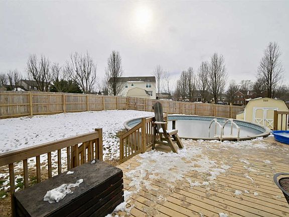 Enjoy this summer with a beautiful above ground pool and oversized back yard. Complete with privacy fence and large deck. 2 story in Burlington in desirable Darmouth Woods subdivision. 4 bed 3 full bath with a finished basement with a walk out. Granite counter tops, Bamboo floors, and plenty of room to entertain. No HOA. Will need new carpet and some paint. Comes with lifetime warranties on foundation. Buyer to verify all information.