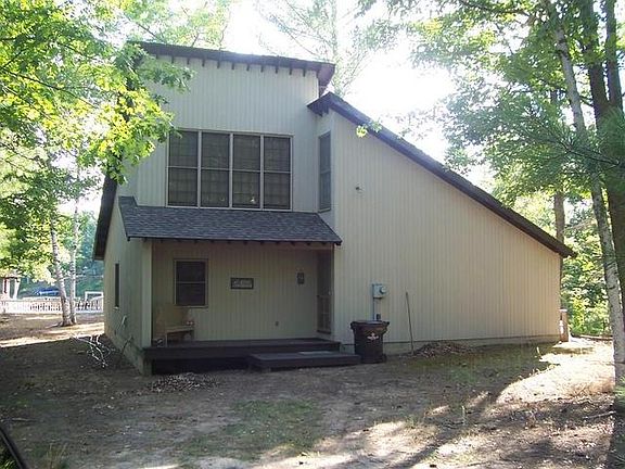 Secord Lake waterfront home or cottage, over 400 feet on the water on a peninsula. Newer built 3 bedroom, 2 bathroom home. Sunken living room with wood burning stone fireplace and vaulted ceilings. Loft overlooking the living room. Beautiful screened sunroom on the waterside. Newer walkway to the dock with the gazebo. This property has 4 parcels 1.55 acres combined with large trees and seclusion.