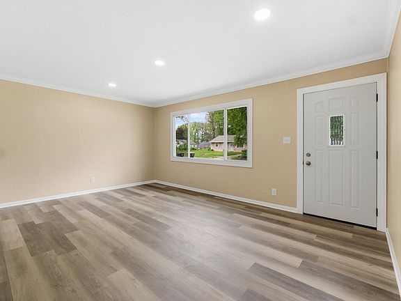 Step into this beautifully renovated home, featuring a brand-new roof, all new windows, a fully updated kitchen with new cabinets and countertops, a completely renovated bathroom with a new bathtub/shower combo, toilets, and vanity, updated canned lighting, and luxury vinyl plank flooring throughout. Fresh paint adds a crisp, modern touch, creating a truly move-in-ready atmosphere. The efficient floorplan offers two spacious bedrooms, providing comfortable living without wasted space. Outside, you'll find a large detached garage, perfect for storage or a workshop, all set on a lot along a quiet street with plenty of mature trees. Plus, you’re just minutes from local shops, restaurants, and downtown Fort Wayne. Don’t miss this opportunity to own a stylish, low-maintenance home with modern amenities and a peaceful setting.