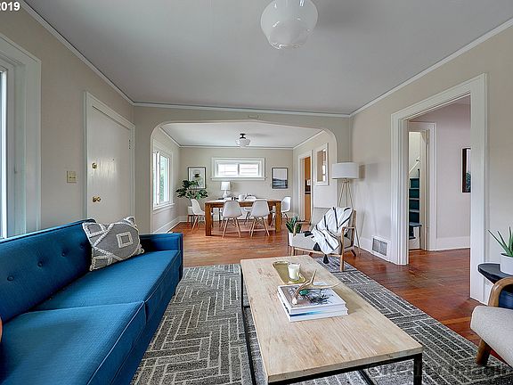 Adorable Alberta Arts Bungalow. Great floor plan w/ fir floors, org.details, school house lights.TWO gas fireplaces. Living rm w/built ins. Recent kitchen remodel w/new cab, granite, & tile fl.FAB basement space w/high ceilings, gas fireplce, & 1/2bath. Garage has heat & additional finished work space. Newer roof, 95% eff furn, no oil tank. Complete porch rebuild. One blk to Alberta-Case Study, Tin Shed, Bamboo sushi & more. HES 6/10 [Home Energy Score = 6. HES Report at https://rpt.greenbuildingregistry.com/hes/OR10104062]