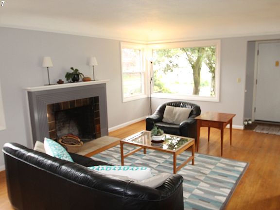 High demand Beaumont/Wilshire neighborhd. This home will not disappoint. 3 bdrms on main level. Master bdrm w/full bth & patio access. Open & light dining rm and kitchen w/bay windows. Hardwd flrs Updated kitchen and bths. Kitchen has maple cabinets, marmoleum flr, corian counters. Pratt & Larsen tile. 2 frplcs. Nice family rm in lower level. Covered patio. Fenced yard. Close to New Seasons, Kennedy School, Parks, Alberta Arts District.