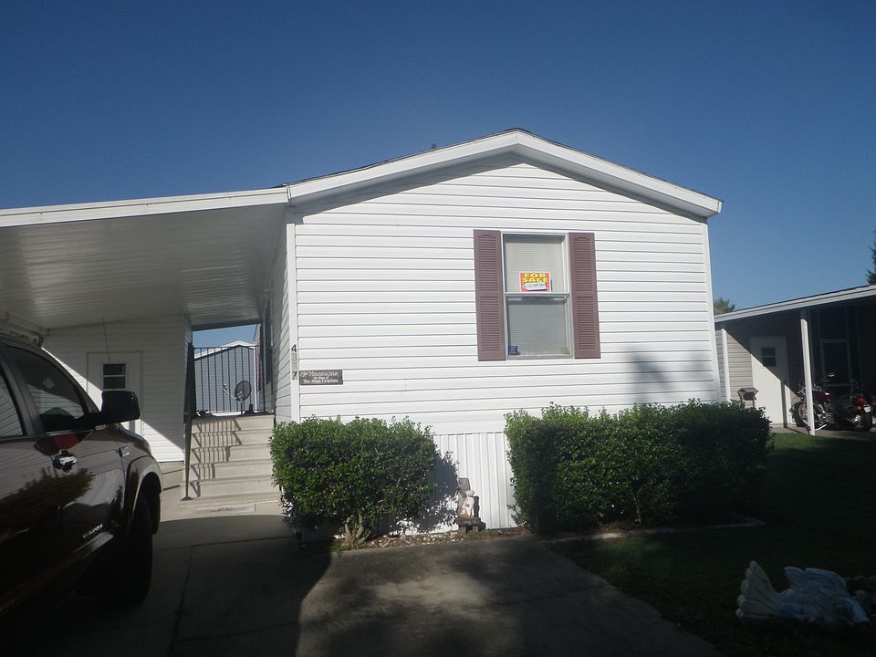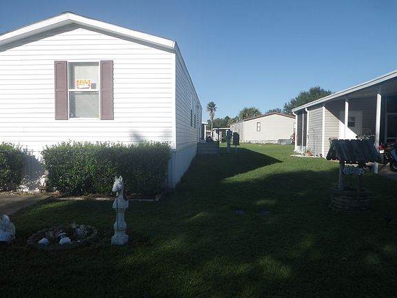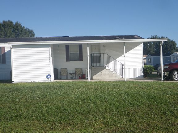 located in peddlers pond park!! 2 swimming pools, one is heated, play ground, storage.lot rent very cheap. trailer is on corner lot!! NICE YARD , has shed and carport!!!