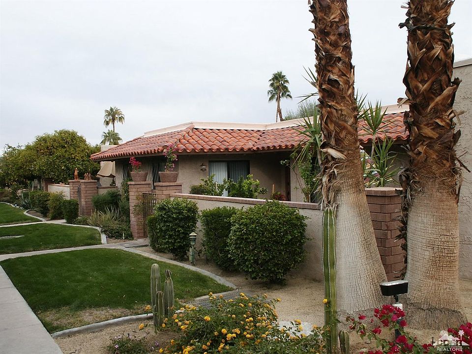 $35K price was just to purchase lease in 2019. Three Bedroom ! Located High up in the hills of South Palm Desert 100 unit community offers the best of active lifestyles. Featuring three bedroom,two bath, spacious single level home in a park like setting surrounded by breathtaking mountain views. This home features a beautiful remodeled kitchen and wet bar that opens to a spacious and light great room with marble floors. The oversized master bedroom suite is steps away from the Pool and Spa. Bathrooms are updated with Marble counters and designer sinks. Additional features are the beautiful remodeled clubhouse with fireplace,billiard room,library(computer and internet access),and fitness center. Six swimming pools and five spas complete the intimate 20 acres club. HOA include tennis, pickleball and social along with eight lighted championship tennis courts.