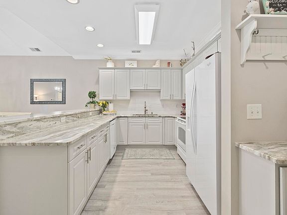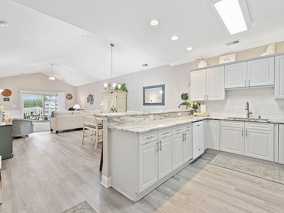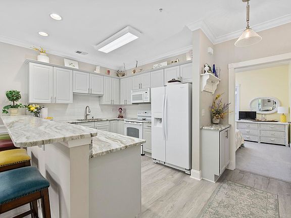 Welcome to this stunning top-floor 3-bedroom, 2-bath condo in the highly sought-after Magnolia Pointe community! Located in an elevator building, this impeccably maintained condo has only been used as a second home and has never been rented. Inside, you’ll love the soaring cathedral ceilings and stylish upgrades throughout, including new LVP flooring in the main living areas, plush new carpet in all bedrooms, and elegant quartz countertops in the kitchen complemented by a tile backsplash and newer appliances. Thoughtful details abound—from the added foyer cabinet, wainscoting in the living space, and board-and-batten accents in the guest bedroom, to the custom shelving in closets and a built-in wall safe in the primary suite. For added comfort and efficiency, a brand-new HVAC unit was recently installed—ensuring year-round peace of mind and energy savings. Step out onto your tiled patio with a ceiling fan and sunshades—perfect for enjoying the early sunrise with your morning coffee or evening drink in the afternoon shade while overlooking a peaceful fountain-view pond. Additional features include a storm/screened door at the entrance and convenient proximity to two of the community's multiple pools. Located within Myrtlewood Golf Club, Magnolia Pointe offers beautifully landscaped grounds, multiple swimming pools, and a true resort lifestyle. Just minutes from the sandy shores of the Atlantic Ocean, Broadway at the Beach, Barefoot Landing, and only 20 minutes from the Murrells Inlet MarshWalk, this location is hard to beat.This top-floor gem won't last—schedule your showing today!