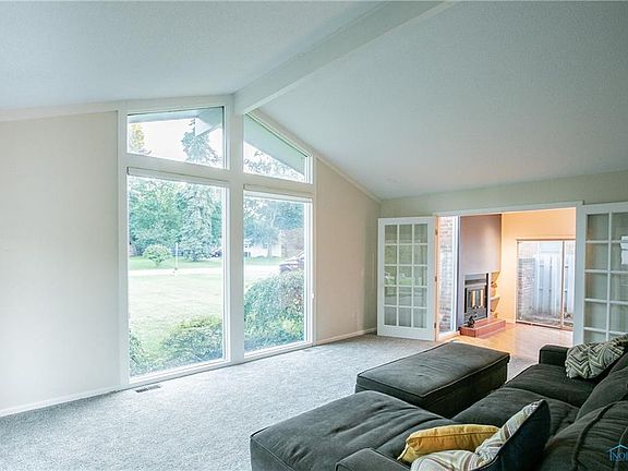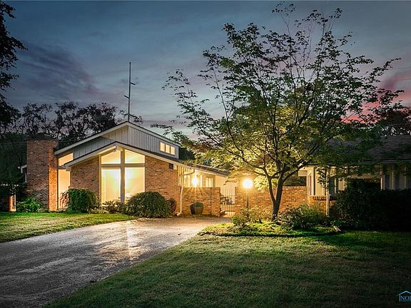 BEAUTIFUL mid-century modern home situated on large lot! 3 bed/2 bath, great open floor plan. Living room features vaulted ceiling, floor to ceiling windows, and French doors to family room. You'll love the family room's hardwood floors, built-in library shelving, and fireplace! Modern kitchen with vaulted ceiling, skylights, and open to dining room. Beautiful landscaping, Sylvania schools!
