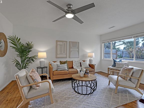Adorable Move in ready, one-level living home with 3 bedrooms, remodeled bathroom, hardwood floors, and a sweet updated kitchen. Laundry room with great storage includes washer and dryer. Newer double-pane windows, a one-year-old tear-off roof. Large fenced yard with raised beds for your spring planting. Large dog park steps away from your front door. Close to freeway access, airport, and shopping less than 3 miles away at Cascade Station. [Home Energy Score = 5. HES Report at https://rpt.greenbuildingregistry.com/hes/OR10224314]