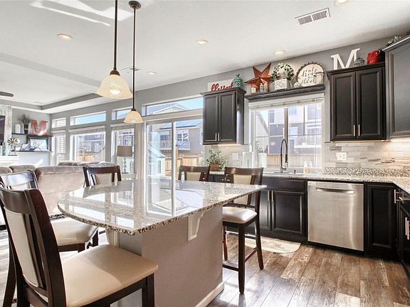 Impeccable two story home with 4 beds, 4 baths, over 2,600 finished sq ft and 2 car garage. Home boasts quality updating throughout including kitchen back splash tile and under cabinet lighting, fireplace tile, upgraded flooring on all levels, wall wood work and permitted finished basement! Back yard is landscaped includes shed and custom made planter boxes. This home is practically new built in 2016 and has so much to offer. Priced at $480,000 it is a tremendous value in Cherry Creek Schools and HOA is low at only $42 a month includes club house, pool, trash and has a brand new park being built near by.