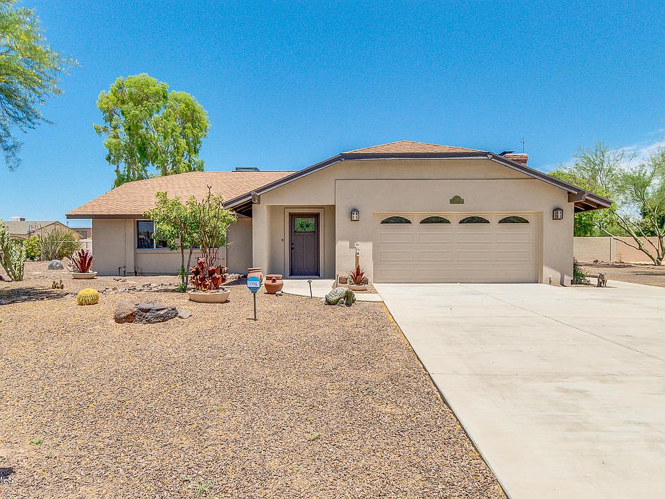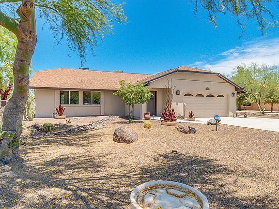 BEAUTIFUL HORSE PROPERTY! NO HOA! NEW PAINT IN AND OUT! NEW CARPET! MOUNTAIN VIEWS! Welcome to this open floor plan home which sits on well over an acre of land. Located in a highly desirable community near the Thunderbird Conservation area, this home offers plenty of features for you and your guests to enjoy... This versatile property has been meticulously maintained and offers plenty of countertop space for meal prep and entertaining! You'll never run out of room for your cooking essentials with the vast amount of cabinet space... The butler pantry and roll out shelves create even more storage options... The large master suite has a separate entrance to the backyard and features an automatic roll-up steel security door. Two custom drive-thru side gates allow full easy property access! With a tack house, a full arena, and a 2,500 sq. ft. pole barn, this property is a dream house whether you own horses or just want room for your toys- this is the HOME for you! New HVAC in 2019. New water heater in 2020. The brand new LG smart washer/dryer with pedestals and the wall-mounted ultra slim 75" Samsung Smart TV convey! Gorgeous updated lighting including an authentic Jonathan Adler 18-light chandelier and a Troy Odyssey 9 globe chandelier. You'll be near I-17, 101 and more... You don't want to miss the opportunity to call this amazing home yours!
