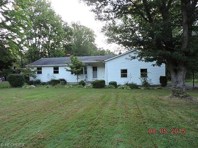 Canfield Ranch style home on 1+acre lot that sits back off the road. Rear family room addition, side sun porch and rear deck. Attached 2c garage plus additional 1c det garage/ shed in rear yard. City water / septic -tested and failed. Loads of potential but requires repairs and septic upgrade. Rear detached garage encroaches neighboring property as per attached survey. Easement to be granted as per survey.