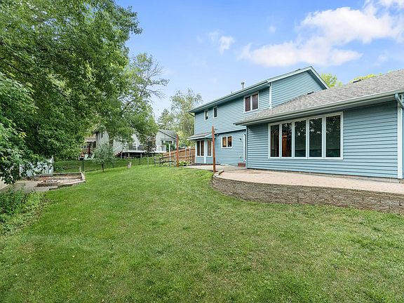 Enjoy a wonderful Two Story with private wooded setting located on a desirable cul-de-sac street. The living rm & formal dining rm each feature a bay window. Newly refinished birch hardwood floors extend through the kitchen & dining room - stunning! The stylish kitchen features stainless steel appliances, large window over the kitchen sink, and large dining area that walks out to a massive patio area. A vaulted family rm off the kitchen features new carpet, floor to ceiling brick gas fireplace w/ built-ins , and large wall of windows for nature views. There are 3 spacious bdrms on the upper level & two bathrooms. The primary suite runs from the front to the back of home & feels like a retreat. This room features vaulted ceilings, built-in vanity area w/ sink, walk-in closet and private 3/4 bathroom. The finished lower level has amusement rm & versatile 4th bdrm or home office. Newer roof (2021), concrete driveway, front porch, shed, paver firepit area, and beautiful fenced yard.