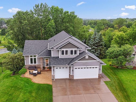 Original Owners! Welcome to your dream home at 4829 Redpoll Court, a refined single-family home nestled in the serene enclave of Eagan. This exquisite property, with 5 spacious bedrooms and 3.5 luxurious bathrms, is tailored for step-up buyers seeking an elevated living experience. As you step into this elegant home, you are greeted by a majestic great room on the main level, boasting 10-foot ceilings and a stunning stone gas fireplace - an ideal setting for cozy evenings or grand entertaining. At the home's heart, a recently updated kitchen, features new cabinets installed in 2024, granite countertops with an expansive island, and under cabinet lighting. Hardwood floors guide you through the home, complemented by plush, newer carpeting for a touch of warmth. Outside offers a stamped concrete front patio and a composite deck overlooking a private sanctuary, including a tranquil pond and mature trees, offering a peaceful retreat. 4 bedrms on 1 level ensure comfortable family living, while the walkout lower level, completed with a finished touch, extends your living space. With a durable new roof with hail-resistant shingles added in 2017, an irrigation system and the charm of a quiet cul-de-sac. Just a stone's throw from the natural splendor of Lebanon Hills State Park and 2 blocks from Red Pine Elementary School. Please see supplements for a list of updates.