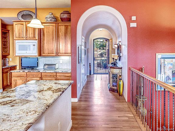 Absolutely STUNNING, well-maintained, elegant, semi-custom hard stucco home. The serenity of this quiet coveted gated community with mature landscaping makes for a beautiful home setting overlooking the Cherry Creek Dam and Unobstructed Mountain Views. From the foyer entrance you'll find soaring vaulted ceilings in the living and formal dining rooms accentuating the professional interior decorating details and welcoming you inside. With ceiling surround sound speakers. With its traditional floor plan, the home features, a huge master suite with five-piece master bath, shower w/ tile bench, custom walk in closet, dining room, home office, an open concept kitchen with breakfast nook and open great room w/fire place as the focal point on the main floor. Two-car garage with lots of storage space. The gourmet kitchen features Sub Zero refrigerator, Thermador double ovens, gas stove top, microwave, gorgeous custom cabinetry, loads of countertop space, granite tops and huge island & custom pantry! Additional amenities include high ceilings, beautiful wood floors, crown and trim detail, excessive lighting piercing throughout the house through tall windows, shutters, custom window coverings, ceiling surround sound speakers throughout, central AC, and main floor laundry. The expansive upper and lower decks with a custom 15x18 ft. awning and hot tub is ideal for entertaining and enjoying breath taking sunsets. Retreat to the finished walk out basement with large custom made entertainment center with fireplace, granite wet bar, recreational rooms, two large guest bedrooms and ¾ bath. This home truly looks like it has never been lived in. Is "move in ready".....and A Must Take the Virtual Tour!!!
