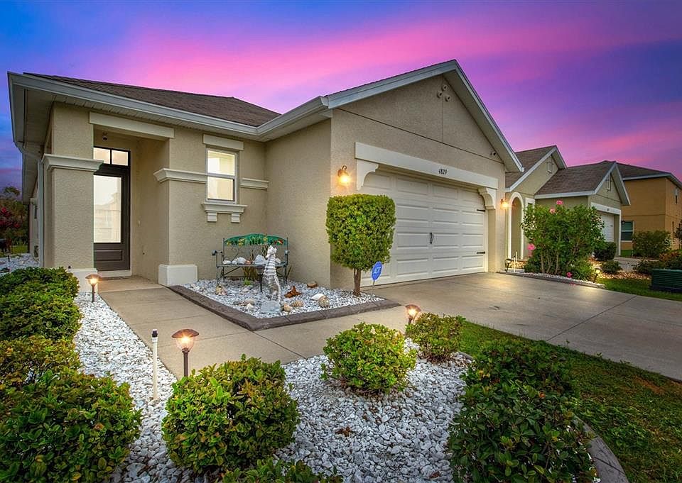 Welcome to the charming property at 4829 San Palermo Dr, situated within the serene confines of the Cottages at San Lorenzo in Bradenton. This delightful residence boasts a spacious layout spanning 1,504 square feet, featuring three bedrooms and two bathrooms. As you step inside, the extended lanai immediately captures attention with its tranquil water views, accentuated by a calming fountain and stamped concrete flooring. The comforting ambiance is enhanced by the cooling ceiling fan, creating an ideal space for relaxation or entertainment. Convenience meets functionality with a two-car garage, a dedicated laundry room, and the added security of an ADT alarm system. The open design seamlessly connects the dining room, adorned with vinyl flooring and a ceiling fan, creating a welcoming atmosphere. The primary bathroom offers a full bath with a tub/shower combination and a linen closet, while the first bedroom features cozy carpeting, a closet, and a ceiling fan. Currently utilized as an office space, the second bedroom includes a closet, ceiling fan, and an additional storage closet. The kitchen exudes modern elegance, equipped with a breakfast bar, granite countertops complemented by a stylish backsplash, and matching black appliances. Meanwhile, the living room exudes sophistication with wainscoting, a ceiling fan, and sliders leading out to a spacious lanai, providing sweeping water vistas. The master bedroom presents a haven of comfort, boasting a large walk-in closet and an ensuite bathroom featuring a stand-up shower and dual sinks, offering a luxurious retreat. Conveniently located near SR 64, this residence offers easy access to a myriad of shopping options and the allure of Anna Maria Island. Additionally, its proximity to I-75 ensures effortless journeys to various beaches, the UTC mall, and an array of entertainment options, providing an ideal blend of tranquility and accessibility.