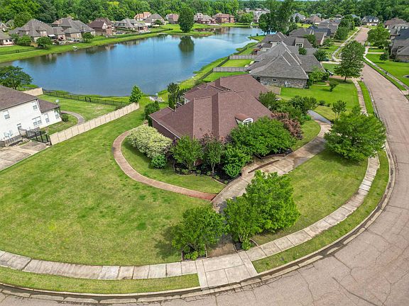 Custom built home sitting on neighborhood lake with views from almost every room. Features 5 large bedrooms/4.5 baths. 4 bedrooms down include 2 hung primaries, one with its own fireplace, separate entry & walk through shower (Perfect in-law suite). Handicap accessible if needed. This large open floor plan has tons of windows and double doors. Stained concrete floors downstairs, hardwood floors up. 4 HVAC units, 2 tankless water heaters, 4 car garage and beautiful Tuscan doors. Home is handicap accessible! Call today to book your tour.
