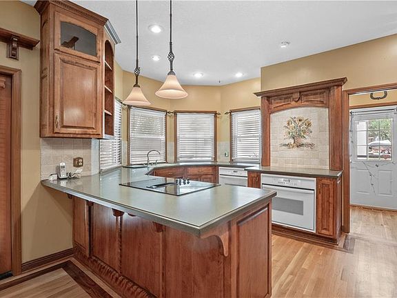 Step into timeless elegance with this one-owner, custom Victorian home, nestled on a private cul-de-sac in the desirable Hawthorne Valley neighborhood. Designed with both charm and functionality in mind, this residence boasts an open-concept kitchen and great room—providing perfect flow. The kitchen is a culinary dream, featuring ample cabinet and counter space, a double oven, peninsula, and immaculate hardwood floors. Upstairs, you'll find four generously sized bedrooms and three full bathrooms. The primary suite offers a fireplace, double vanity, and a walk-in closet. The partially finished basement adds versatility, ideal for a home gym, office, or additional living space. Convenience is key with a main-floor laundry room, while the expansive backyard area is perfect for outdoor living. The location couldn’t be better, being just south of Town Center and the Hawthorne restaurants and shops, and situated in the Blue Valley School District. This well-loved and meticulously maintained home is ready for your personalization!
