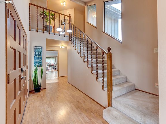 Welcoming home on a .25/acre lot in a quiet cul-de-sac. 3bdr./2 bath. Open concept family room/kitchen and enclosed sun porch. Updated kitchen with subway tile & concrete countertops. Newer appliances. Formal living room with a wood burning fireplace and outdoor deck. Den/Dining room off the kitchen. Master bedroom has en-suite bath. RV parking, huge carport, and extra deep 2-car garage & attached shop. Large backyard features wrap-around deck, coop/shed & treehouse! Ethernet wired to 7 rooms.