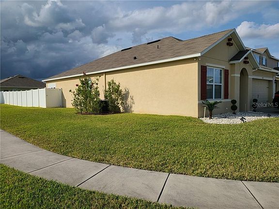Upgraded home on a corner lot in newer community off Hwy 27 and I-4 with shopping, restaurants and A+ schools very close by. Upgrades include fenced backyard with a 12x12 deck and two Christmas palm trees, new faucets (kitchen(motion sensor) and bathrooms), new kitchen light fixture, whole house water filtration, garage door insulation installed, 8x12 patio enclosed with a sliding door and windows, new showerhead in master shower, attic ladder installed, 2 exterior Nest cameras, peep hole camera, motion activated front door light and a Remo+ doorbell installed, garage door opener w/wifi connection installed. Termite, pest control, AC maintenance and lawn care protection contracts in place. HOA $210.81/Quarter ($70.27/mo).