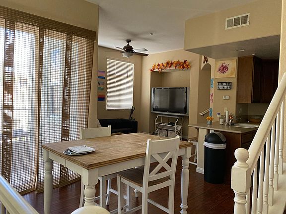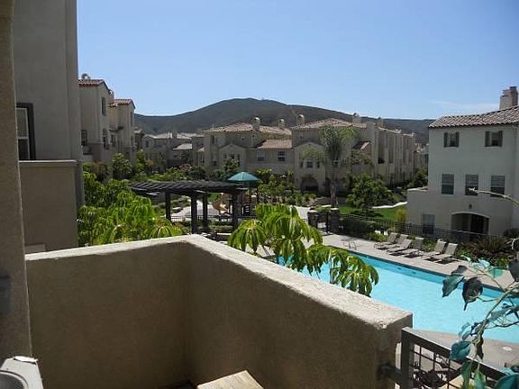 3 BR + 3 BA townhouse in a gated community. Walking distance to Cal State, San Marcos. 1228 SF, 2-car attached garage. End unit overlooking the pool with beautiful mountain view. Spacious floor-plan. Hard wood floor throughout. Upgraded counter top, kitchen sink and cabinets. Custom paint.