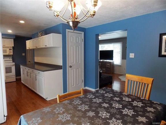 Sweet 1983 built 3 bedroom ranch on a .47 acre lot with Webster Schools! New Red Oak hardwood floors. Brand new front deck 2016. Architectural roof in 2003. Water heater in 2015. Furnace in 2010. A/C in 2011. House backs to Kent Park. Updated bath and kitchen with pantry. Attic fan in hall. Basement windows replaced in 2008, finished walls with wood burning stove in basement.