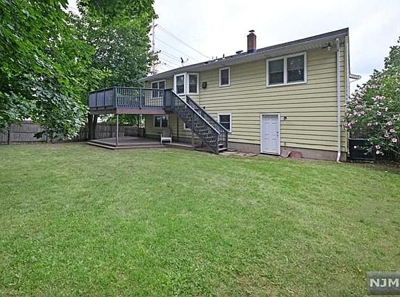 Wonderfully maintained 4 BR 3 Full bath B/L is approximately 2268sf. Perfect for extended family or to work from home. 1st floor has beautiful hardwood floors, formal size living & dining rooms, hall bath, MEIK w/door to a 2 tier deck. Primary bedroom has it's own private bathroom. Ground floor has a Family room and a Living room, 4th bedroom, 3rd full bath, a kitchenette and separate entrance to private deck. Entrance also to the 1 car garage. Laundry & utility room. Large, fenced in yard with a side deck as well, Central Air. Gas HW, BB Heat. Replacement windows throughout. Very close to NYC bus, schools, Maywood's downtown shopping including Maywood Market, local park and more