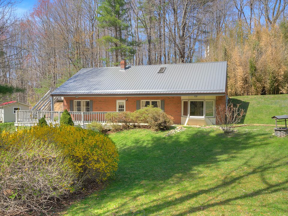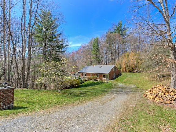 Great Floyd County location off of Rt. 8 close to the Montgomery/Floyd line. Well maintained brick ranch with new metal roof on 2+ mostly wooded acres. Open floorplan with cherry floors in both the living room and family room. Eat-in kitchen opens to living room which boasts a soapstone woodstove with glass door so you can enjoy both the efficiency and ambiance of a warm fire. Main level master with spacious walk-in closet, main level laundry, and additional room on main that can be used for an office or den. Enjoy the surrounding woods from the covered front porch, deck, or 2 story balcony. Small stream and walking path just past the large storage building and level yard. $2000 credit for carpet replacement with acceptable offer. Large pile of seasoned hardwood conveys.