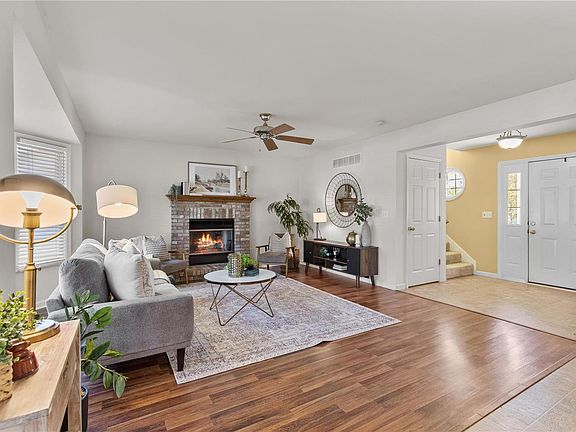 Adorable 2-story with FINISHED LOWER LEVEL, situated on quiet cul de sac, surrounded by large farms & peaceful countryside. 10 ACRES common ground, 2 PLAYGROUNDS, bbq pavilion, sports court & WALKING TRAIL. Great curb appeal with charming COVERED FRONT PORCH, carriage lights, vinyl siding, HIGH-END ANDERSEN WINDOWS & professional landscaping. Open great room with cozy FIREPLACE, bright BAY WINDOW. Wood kitchen cabinets with GRANITE COUNTERS, tile backsplash, new dishwasher, center island & pantry. Breakfast room steps out to COVERED COMPOSITE DECK with stone patio - ideal for entertaining. Upstairs owners suite with WALK-IN CLOSET & built-ins. Downstairs flexible rec room, decorative fireplace, office, 4th bath with JACUZZI TUB, laminate flooring, recessed/sconce lighting & STORAGE. Level backyard with invisible PET FENCE & graceful WEEPING WILLOW tree. Newer HVAC & water heater. Easy access to RV storage, Dames Park & Main St shopping. Near Highways 79/70 & AWARD-WINNING SCHOOLS.