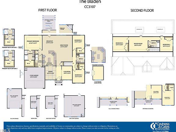 Our Bladen plan has a downstairs owner's bedroom as well as two additional bedrooms. Upstairs two additional bedrooms and bonus room. You will enjoy a separate dining room with flex space which could be used as an office on the main floor. This home has it all! Come enjoy low county only taxes and a large half plus acre home-site. Photos are representative, home is in construction.
