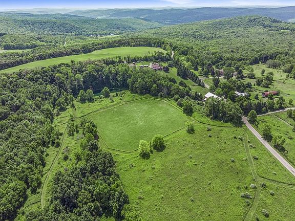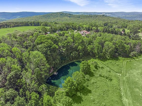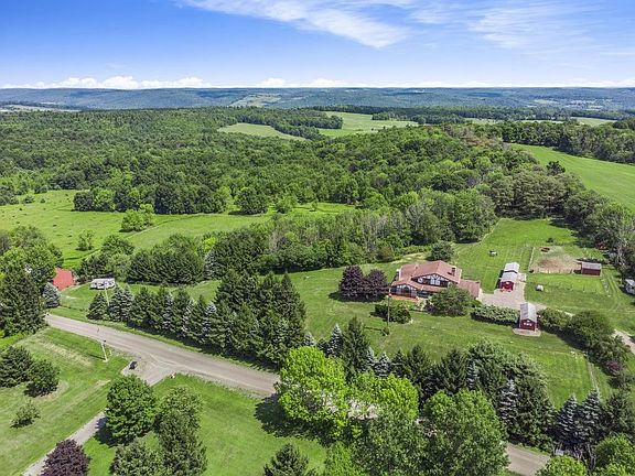 Make every day a retreat at this country paradise! This Custom brick and Tudor home is perched on a hill overlooking 50+ glorious acres that include horse barns, pastures, mature woods, a Hickory grove, berry bushes, apple trees and a must-see secluded swimming pond nestled below a ridge. Bring your horses and ride through the meadows and wooded trails or enjoy the land in any number of ways. This gracious home features a great room with high, beamed ceilings, a cozy fireplace, big windows with views, that is attached to your very own Billiard Room. The kitchen boasts cherry cabinets, custom stained-glass details and updated appliances. The vast shop space in the basement will be the envy of every woodworker, handyman or crafter! Entertain on the patio with built-in grill or indulge your car hobbies in the garage with second workshop. Nicely situated between Ithaca and Binghamton.