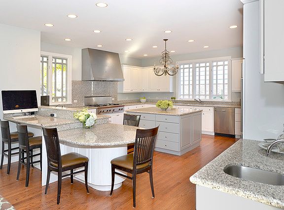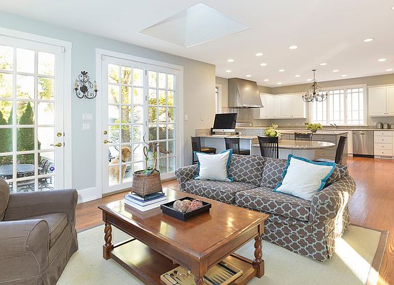 Bright, pristine renovated home w/open floor plan on wider lot (57'x165') in East Winnetka. A+ location. Surprisingly big rooms, much character & great natural light. Fantastic open kitchen/family room addition spans back of house. Kitchen with large island & breakfast area opens to sunny family room which leads through French doors to expansive patio with views of deep, landscaped yard. Bright, crisply decorated with high ceilings & hardwood floors. Gracious living room with bay window & wood-burning fireplace, spacious dining room & office full of windows. Beautiful master with luxurious master bath. Updated baths. Tree-top bedrooms with bath on third floor. Fabulous basement with tall ceilings in the rec room, exercise room (which could be 6th bedroom) plus full bath. Incredible patio & landscaping, plus private sportcourt-type area in rear yard. Many updates include newer roof & more! Walk to beach, parks, train, Greeley & NTHS.