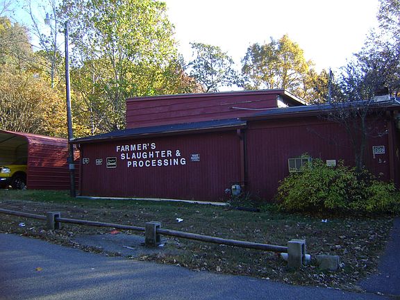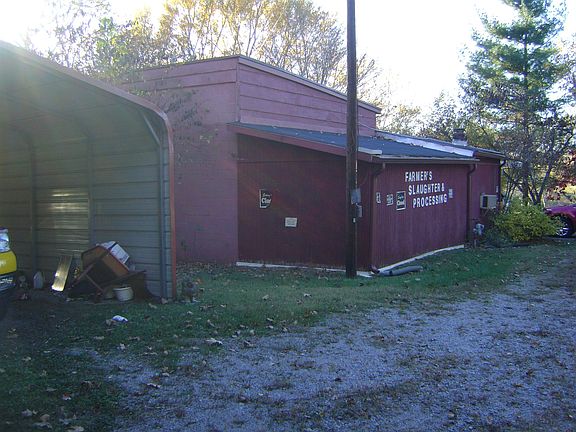 Being sold with adjoining lot and former meat processing building. 2 walk-in coolers remain. 1100 sf of storage and 1 acre being sold with property. Wooded lot with privacy and wildlife. King sized bed in master available at no costs.fenced kennel.