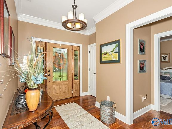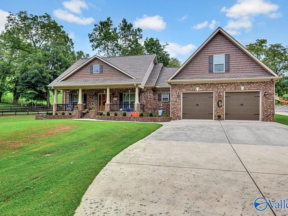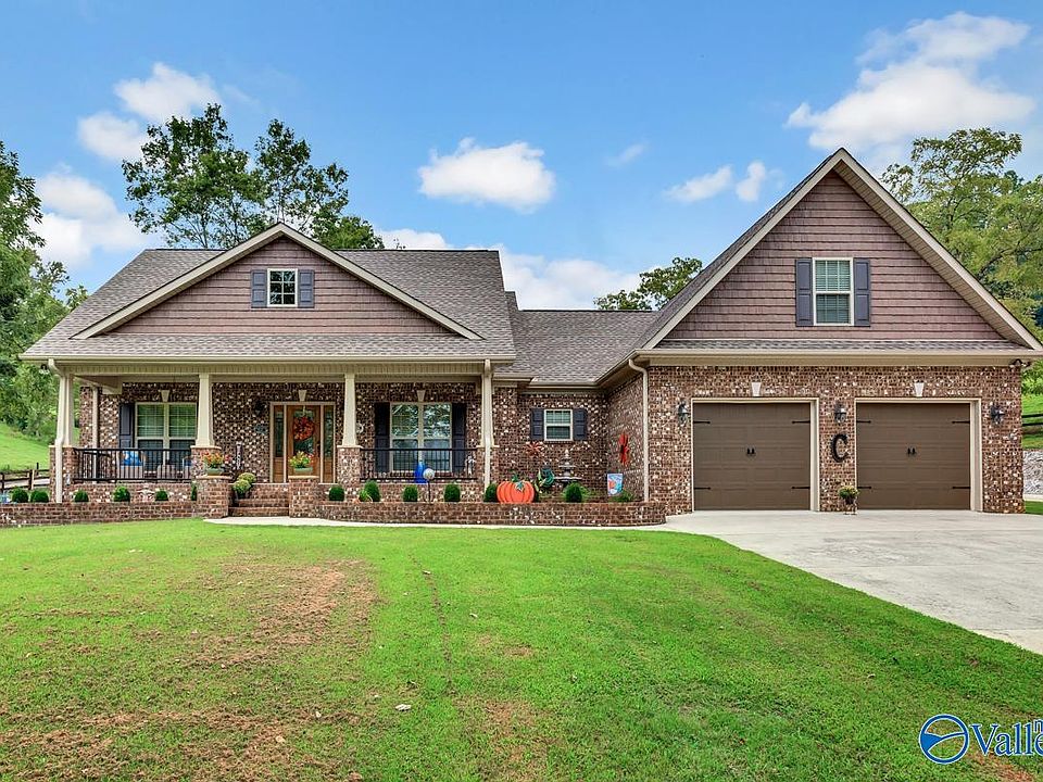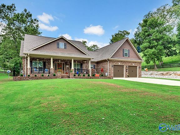 Full Brick, 3 Bedroom / 2 Bath Home on +/- 63 acres! The interior of this home features gas log fireplace and trey ceilings in the living room, eat in kitchen with recessed lighting and backsplash, dining room with wood flooring, carpet flooring in 2 guest bedrooms, and a bonus room upstairs. The master suite features wood flooring, trey ceilings, and a glamour bath. Outdoor amenities include a cover front porch, partial covered patio, concrete sidewalk and drive way, 2 car attached garage with storage room, and a pond. The shop includes a bathroom, air conditioner, gas heater, and 100 amp service. This property is located 45 min from Huntsville.