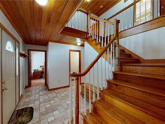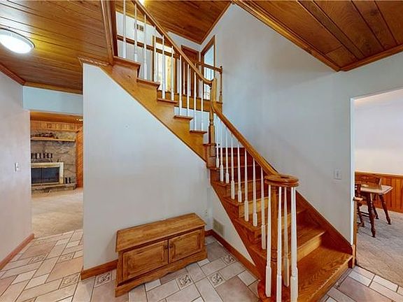 Welcome to this 2 story home on 1 acre in Bullskin Township! Upon entering the front door into the large entry way you will see the beautiful oak stair case leading to the second level. On the main level there is a bedroom (or office space), half bath, living room with a stone cased fireplace and beautiful oak wood ceiling, large kitchen with oak cabinets and dining room. Off the kitchen is the door that leads to the 2 car attached garage with a wood burner. Upstairs is the master bedroom and master bath with a walk in closet (currently used as laundry), 2 more bedrooms and a full bath. Home has solid doors with oak trim throughout! The full basement has a walk out to the back yard. Home is heated/cooled with geothermal and has a wood burner too.