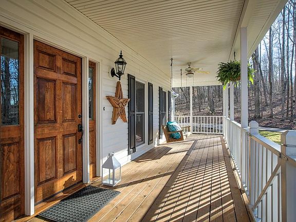 FARMHOUSE with covered porches on front & side & screened in back overlooking 5 acres of wooded privacy! Fenced, level lot with hardwood trees, 5 bedroom/3.5 baths with hardwood floors on main & upper levels. Expansive kitchen with vaulted breakfast room, large island, stainless steel appliances, granite counters, stained cabinets. Large dining room & enlarged family room features wood stove insert in brick fireplace. Large bonus room attached to master perfect for office, exercise or nursery! Fully finished basement with 2 bedroom/1 bath & recreation area.
