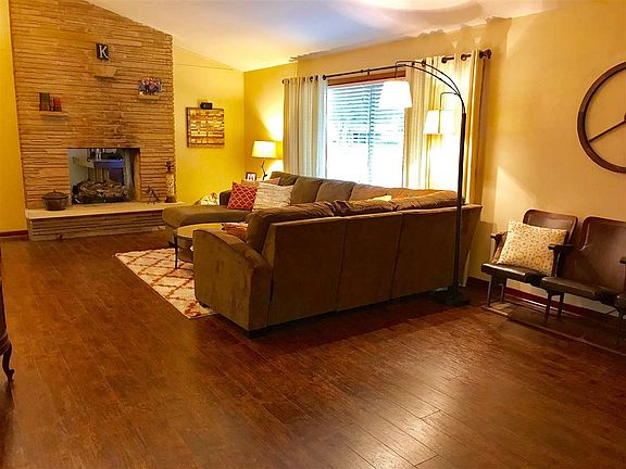 This is the ranch you have been waiting for...Spectacular home on over a half acre corner lot is just waiting for that family that wants to build another 2 car detached garage or park the RV or Boat*Full Brick Exterior with Loads of Charm*Outdoor Features include Large Front Patio Area and This Backyard is Awesome with Huge Covered Patio almost the full length of the home, 12x20 Storage Building & Mature Trees*Inside you will find a Spacious Living Room w/ Beam at the Vaulted Ceiling*Family Room is a Great Place to Entertain with Double Sided Fireplace and Entry onto Back Covered Patio*Kitchen features top-of-the-line Double Gas Ovens and Cooktops, lots of Cabinets & Granite Breakfast Bar + Eating Space in Kitchen*Extra Large Bathroom with Double Vanities and Middle Granite Top Make-Up Area & Jetted Bathtub*Second Bathroom is located near Family Room and is Updated to be a Full Bathroom*Location, location, location... you Won't Find a Better Place to Call Home! Close to Buffalo Park, Rolling Hills Golf Course & Kids Can Walk to Schools
