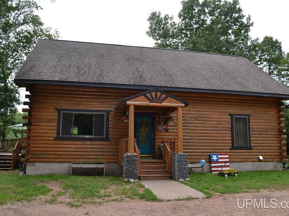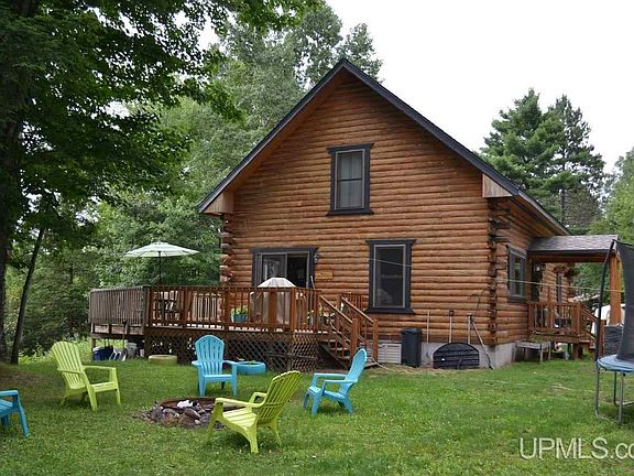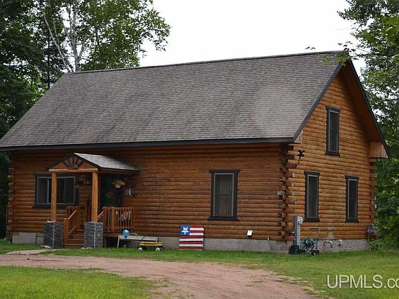 This beautiful log home is warm and inviting and perfectly decorated. Located on the Escanaba River you get your own 300 feet of river frontage. The moment you walk into the home on the newly added entry way your see all the work that went into making this a home. All new kitchen and stainless steel appliances. New light fixtures. You can look out to the river through your kitchen window while doing your dishes. The wrap around deck is just outside of your dining area. It is the perfect place to dine during summer nights or just enjoy the peacefulness and the view of the river. The bath has recently been updated and new flooring. The two bedrooms on the main level are warm and spacious. One of the bedrooms has a perfect view of the river. The upstairs bedroom is one of the largest masters that has plenty of space for your own getaway. A full basement with a work area washer and dryer. Enjoy some fishing in your back yard. Have some guest and let them camp in your yard There is a 50 amp service just for a camper. This is the perfect place to call home.