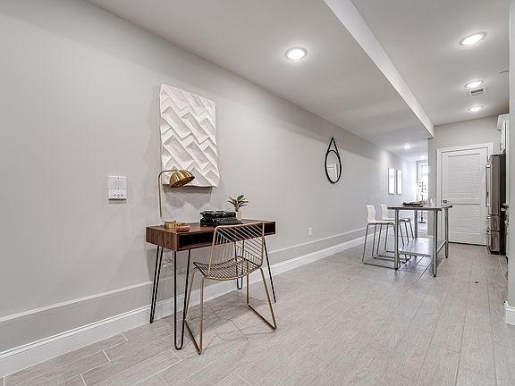 Perfect and parkside, location meets luxury with direct park access and excellent walkability, plus high-end finishes and extra square footage. Loads of natural light flood the classic design and beautiful hardwood floors with details like window casings and tray ceilings. Open floorplan offers abundant space for living, kitchen and full dining area. Kitchen showcases quartz counters, tile backsplash, custom cherry cabinets and stainless appliances. Primary ensuite offers double-glass doors leading out to the private terrace. Bathrooms offer neutral tones, plus soaker tub or shower and vanity for additional storage. Ample closet space and separate utility room offer added convenience and value. Beautiful brick building is newly finished with great curb appeal and even better location Enjoy walkability to 9th Street LightRail, PATH train, vibrant neighborhood and Riverview Fisk Park as your permanent playground.