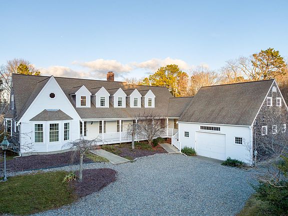 Located on historic 6A, this spacious Cape home has wonderful views of Scorton Creek and is well situated to enjoy the best of the East Sandwich Bay beaches. Approaching the property from the U shaped driveway, you are welcomed to the large, front wraparound porch. The property itself was built in 1985 and has been recently renovated. There are views of the Creek and beyond from most of the rooms.Highlights of the homes' first floor features include beautiful wide pine flooring, a wood fireplace, stainless steel appliances and granite counter in the kitchen, plus a first floor laundry. The second floor has 3 large bedrooms and some great closet rooms. Both bathrooms on the second floor are renovated.There are 3 garages, including one barn style garage which has a useful workshop area plus a second floor. The expansive and flexible nature of this property would enable it to provide not just a fabulous residential home but also some additional usage of the extra space in the form of a home office etc ., subject to local Town by-laws and approvals. Surrounded by serene conservation land, this home would make a great year round or seasonal home.