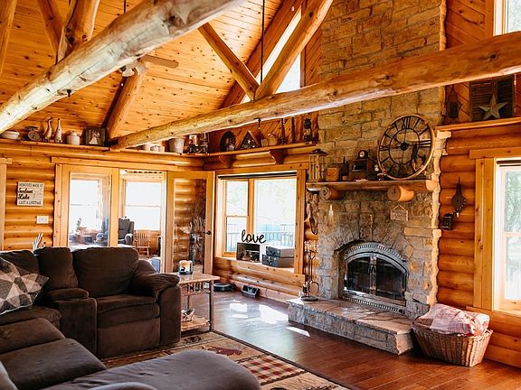 REDUCED! Rare opportunity to own your very own Galena log cabin retreat situated on 11.61 acres +/- with approximately 1,500 ft of frontage along the Smallpox Creek. Conveniently located just south of Galena, this home is surrounded by the beautiful bluffs of the driftless region and less than a 5 mile drive from both downtown Galena and Chestnut Mountain Ski Resort. A 500+ ft private lane lined with Blue Spruce trees leads back to this meticulously cared for 3 bedroom, 3 bathroom log cabin home overlooking the Smallpox Creek below. The main floor features open concept including a completely remodeled kitchen with granite countertop and backsplash and an impressive great room highlighted by tall vaulted ceilings, exposed beams and a floor to ceiling wood burning fireplace. Off the great room is a 4 seasons room and access to a brand new deck, both located in perfect positions to overlook your acreage. Rounding out the main floor is a newly remodeled full bathroom with main floor laundry, as well as a newly installed bedroom. Heading upstairs you will find the large master wing with it's own private bath that was newly remodeled to include a step in tiled shower and jacuzzi tub. The master also features its own private balcony and a short hallway lined with closet space on each side. Also on the upper level, is a large lofted area currently used as an additional bedroom or could also serve as an additional living space or office with its open views over the great room below. The walkout lower level has a third full bath, and plenty of open space that is ready to be finished to your liking. In addition to the 2 car attached garage is another lower level garage/utility room with an overhead door that exits to the rear of the home. The entire exterior of the home was stripped down and resurfaced within the past few years, among many other updates in recent years that are too long to list here (list available on request). Schedule your private viewing to come appreciate this home and property firsthand and maybe you could be the next owner of this Galena log cabin! Maps and boundary drawings in listing are for reference only and do not represent exact boundary survey. See drone photos with proximity labels to Mississippi River and Horseshoe Mound on the East edge of Galena. Square footage is per Jo Daviess County Assessor's office and to be verified by buyer.