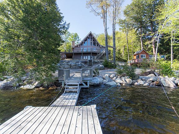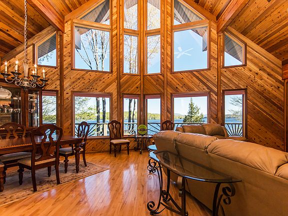 Pecks Lake Direct Water Front Post & Beam Lindal Cedar Home:quality workmanship, huge deck w/stairs taking you straight to the dock, landscaped, outstanding views, wood floors through-out, 3 full baths, 2 fireplaces, 2 beds with a possible third, walk-out basement, large windows, lake views from kitchen, living room and family room in basement, central air, generator, paved driveway, private, secluded & serene....