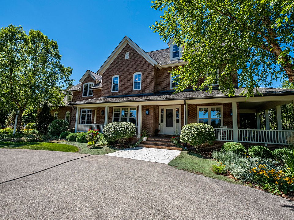 Almost 3.5 acres of natural wildlife and beauty! Custom design and detail in every room. 6300 square feet with 5 bedrooms, 3 full and 2 half baths. Long circle drive brings you to this All brick home with Front and back covered porches. Amazing woodwork and finishes throughout with wide plank floors, painted and stained woodwork. Built in bookcases, beamed ceilings. Custom mudroom with drop zone and Cubbies. 1st floor Den/Office detailed built ins and bookcases. Gourmet Kitchen with open concept to Family Room and Hearth Room and 2 natural fireplaces. Dining Rm and Music Rm off the Foyer. 4 huge Br's upstairs. Master BR with 2nd office or nursery. Fabulous bath and walk in closet space. Lower level REC Rm, Dance studio, Bar, Kids study area, guest suite with private bath.