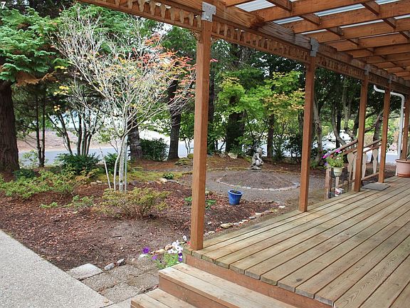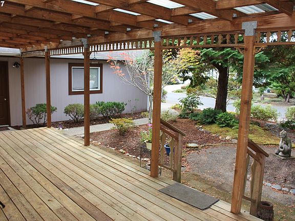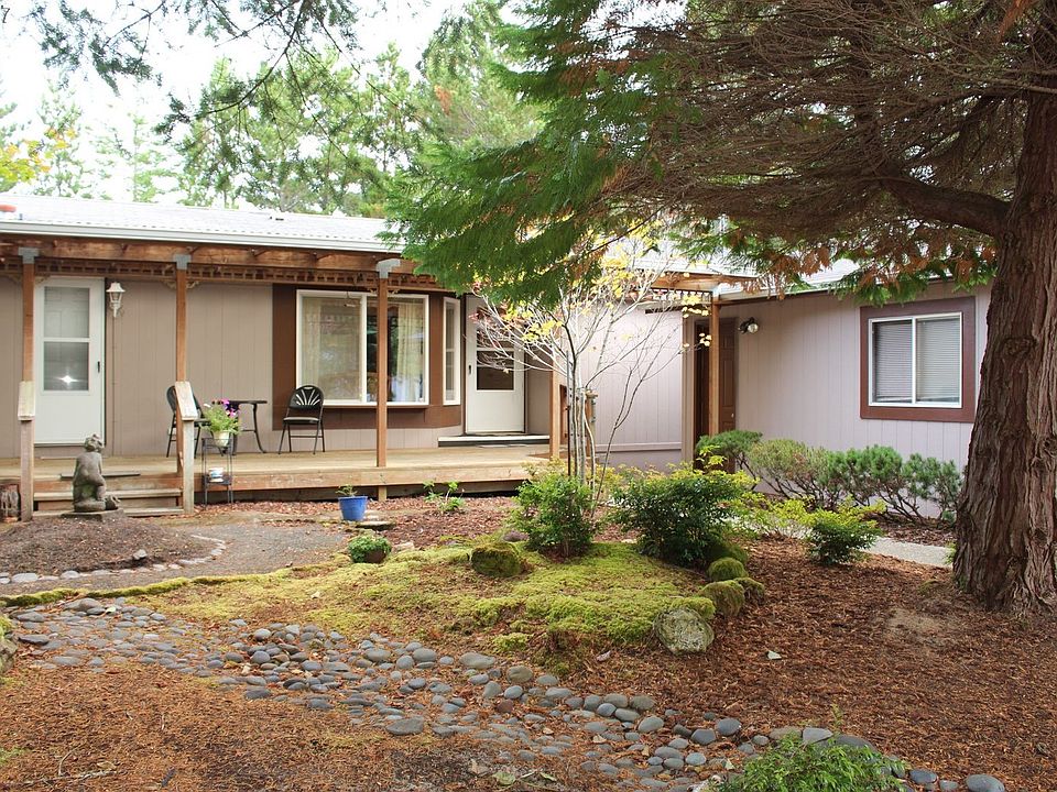 Fuqua manufactured home on a large beautiful private corner lot. Large covered front porch to enjoy the park-like setting. Open living & sitting are w/vaulted ceilings. Kitchen area facing SW for light. Nook area. Lots of cabinets & desk area, eating bar. Master suite w/jetted tub installed 2017 w/surround (finish work to be completed before close. Guest rooms on opposite end for privacy. Double garage w/work bench.