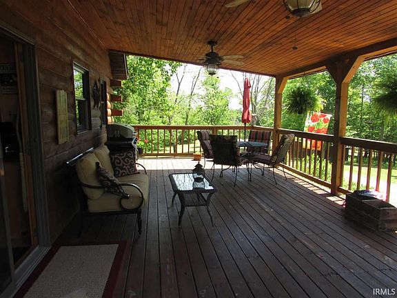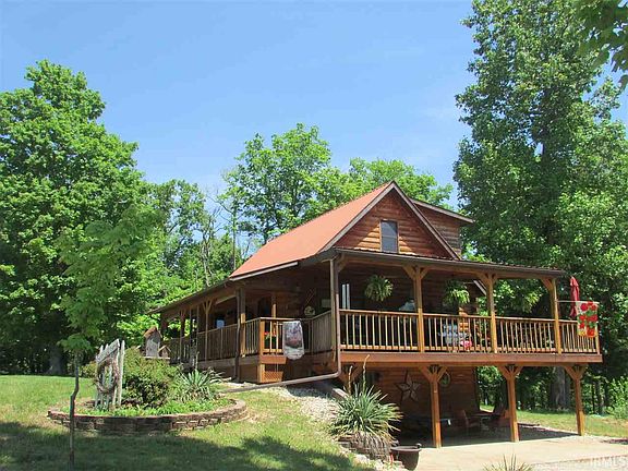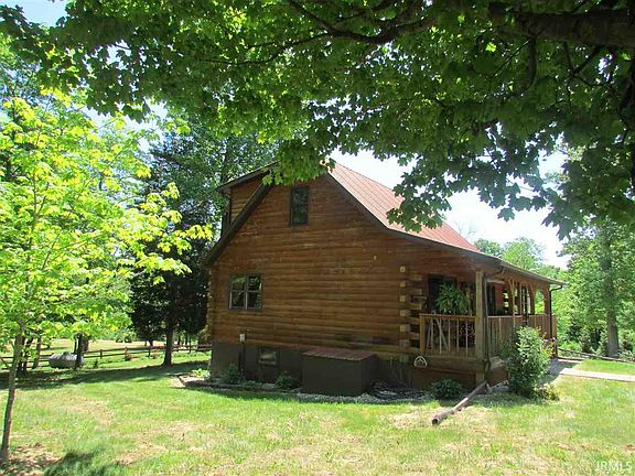 Log cabin nestled among 50.60 acres, approximately 30 acres of woods with 20 acres of pasture. Spring fed creek keeps water flowing all year round - at one point there was a 40 foot waterfall. Trails are all through the woods for ATV's. Home is currently set up as a one bedroom, however it could easily be converted back to add an additional two bedrooms. Deck wraps around side and rear of home. Front porch is partially enclosed. 30x32 pole barn insulated with electric. View from any place in the home is breathe taking. This property is a rare find!