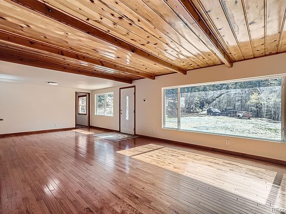 Everything about this home is new! Welcome to this completely remodeled picturesque mountain home situated on almost 8 acres of towering pines and seclusion near Evergreen. Ideal for year-round living or as a serene mountain retreat, this 2Bdr/2Ba home is tucked into the hillside and has been completely renovated down to electrical and plumbing. The spacious and open family room greets you with mountain modern ceilings, a showcase wood burning fireplace and large windows that flood the home with natural light. The upgraded kitchen includes all stainless appliances and new cabinetry. The primary en-suite boasts a generous shower and walk-in closet with built-in shelving. The other bedroom and a remodeled full bath opposite the primary suite allow personal space for all. Outside, you will find two huge storage sheds both connected to electricity perfect for storage, hobbyists, or outdoor enthusiasts with lots of toys. A brand new septic system just installed. The property is conveniently located just 5 minutes from I-70 and downtown Evergreen, offering easy access to Denver, approximately a 30-minute drive away. Ski enthusiasts will appreciate the proximity to 5 major ski areas within a 45-minute drive. This home is a haven for those seeking a perfect blend of comfort and adventure.