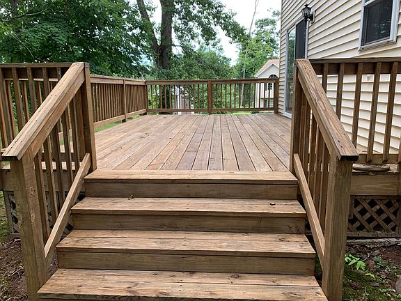 Spacious 3 BR, 2.5 bathroom single family home 1 mile away from Quinnipiac University and 15 minutes drive from Yale University and downtown New Haven. 5 Minutes drive from I-91, Merritt Parkway and beautiful Sleeping Giant State Park. 1st floor - open floor plan, living room, dining room, kitchen, bathroom/laundry room. 2nd floor - 3 bedrooms, 2 full bathrooms, lots of closet space. Large deck, backs to woods and a private yard. 1 Car garage, enough space for 3 cars in the driveway. Natural gas fire place, washer/dryer, dishwasher included. Large, walkout basement. Good credit a must. Lease, security deposit and references required. No smoking. Owner pays for trash and sewer.