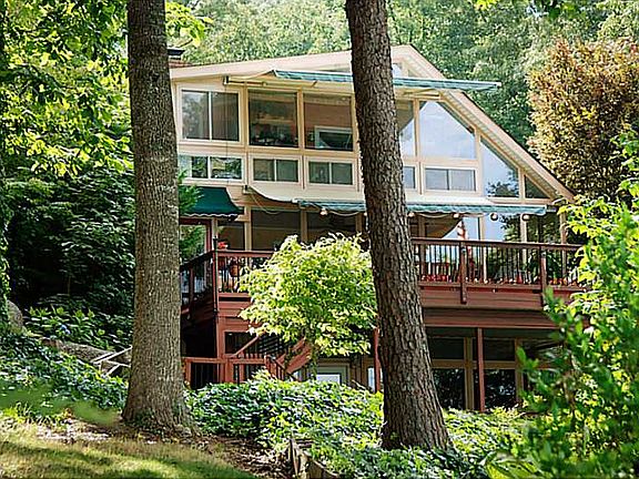Stunning, rare, BIG deep water views on the point of Young Deer Creek! Renovated, beautiful home has amazing lake outlooks from all three levels! Expansive decks on both main level and lower level, as well as large sunrooms on all three floors. Completely renovated Chefs kitchen with wood ceiling, stainless steel, silestone and large island opens to fireside family room, dining room and deck with retractable large awnings. Master retreat on lower level has hardwoods, remodeled bathroom. 1 covered slip, one with hydrohoist. Sq Ft in taxes is incorrect. Incredible views!