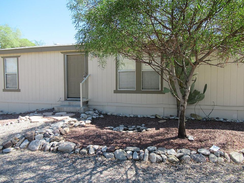 Speedway & Swan area - Centrally located manufactured home, 3 bedroom, 2 bathrooms across the street from a city park. New interior paint and new top grade wood grain vinyl flooring throughout. Eat In Kitchen features refrigerator and gas stove (no dishwasher, m/w or garbage disposal). Split bedroom floor plan. Master bedroom suite includes walk in closet and nice size master bathroom. Laundry room off kitchen with w/d hook ups (electric dryer hook up only). Two assigned off street parking spaces. Call Kathy Flores (520) 305-2907 for an appointment. Go to our web site: flraz.com for more available properties. EQUAL HOUSING OPPORTUNITY.