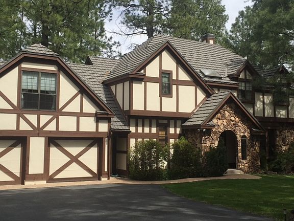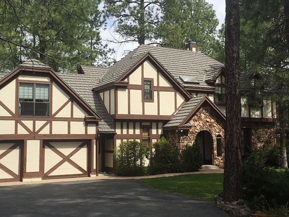 Warm, Rich and Inviting describes this beautiful 19th century medieval architecture. This distinguished English Tudor home is nestled in the tall pines with long range fairway views located in the beautiful Pinetop Lakes CC. You will be amazed at the extensive millwork throughout this gorgeous home. Interior boasts 4 fireplaces, billiard room with wet bar, spacious kitchen with sub zero frig, Built-ins & large windows. Exterior offering expansive covered wrap around deck to enjoy the beautiful views, metal shingle roofing, landscaping, stone work and much more. See attached feature list.