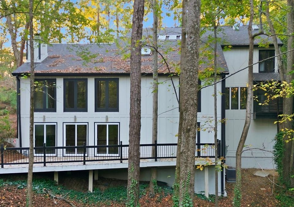 Perfectly situated just minutes from Chastain Park, this beautifully reimagined contemporary retreat offers a rare combination of sophisticated design, privacy, and convenience. Set on a serene wooded lot in one of Sandy Springs' most desirable enclaves, the residence showcases fresh renovations including new siding, exterior paint, and modern doors that elevate its curb appeal and architectural presence. Step inside to a striking two-story living room where vaulted wood-beamed ceilings, dramatic floor-to-ceiling windows, and a stunning statement fireplace create an atmosphere of effortless elegance. Natural light floods the space, blurring the line between indoor comfort and outdoor tranquility. The open-concept layout flows seamlessly into the dining area and the gourmet kitchen, featuring sleek custom cabinetry, high-end appliances, and refined finishes ideal for both everyday living and elevated entertaining. The main-level primary suite is a true private retreat. Enjoy an in-wall fireplace, a spa-inspired ensuite bath, and a screened-in porch overlooking the peaceful, tree-lined backdrop. Upstairs, four additional bedrooms provide flexibility and character, including two that share a spacious deck, one with a private loft, and another ensuite bedroom that serves as a secondary primary suite. Outdoors, the expansive deck and lush, secluded setting invite gatherings under the canopy of mature trees. Whether hosting a dinner party or savoring quiet mornings with nature, this home offers an unparalleled connection to its surroundings. Located moments from top-rated schools, fine dining, and premier shopping, and with quick access to major highways, this home delivers the best of both worlds: a tranquil sanctuary just minutes from Atlanta's vibrant urban core. Experience refined living in Sandy Springs-where modern luxury and timeless design come together in perfect harmony.