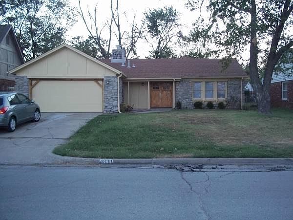 Beautiful 3/2/2 plus office/den. Natural stone house with plenty of custom touches. Hardwood floors in living room, ceramic tiles in entry, kitchen and baths, plush carpet in bedrooms. French door entry to den/office, curved gas fireplace, open floor plan, custom kitchen cabinets, hand-crafted entry doors, new insulated windows, fans in every room, plus an attic fan! Master bathroom has beautiful custom tiled shower. Fenced yard. A beautiful and unique home! Great location with a large community park across the street, 1/2 mile to grocery store, shopping and restaurants. Easy access to Hwy 169 and the BA Expressway. $1550 deposit. Tenant pays all utilities. Minimum requirements: $4650/month net income, clean civil & criminal history, good landlord reference, prefer 1 year at job.